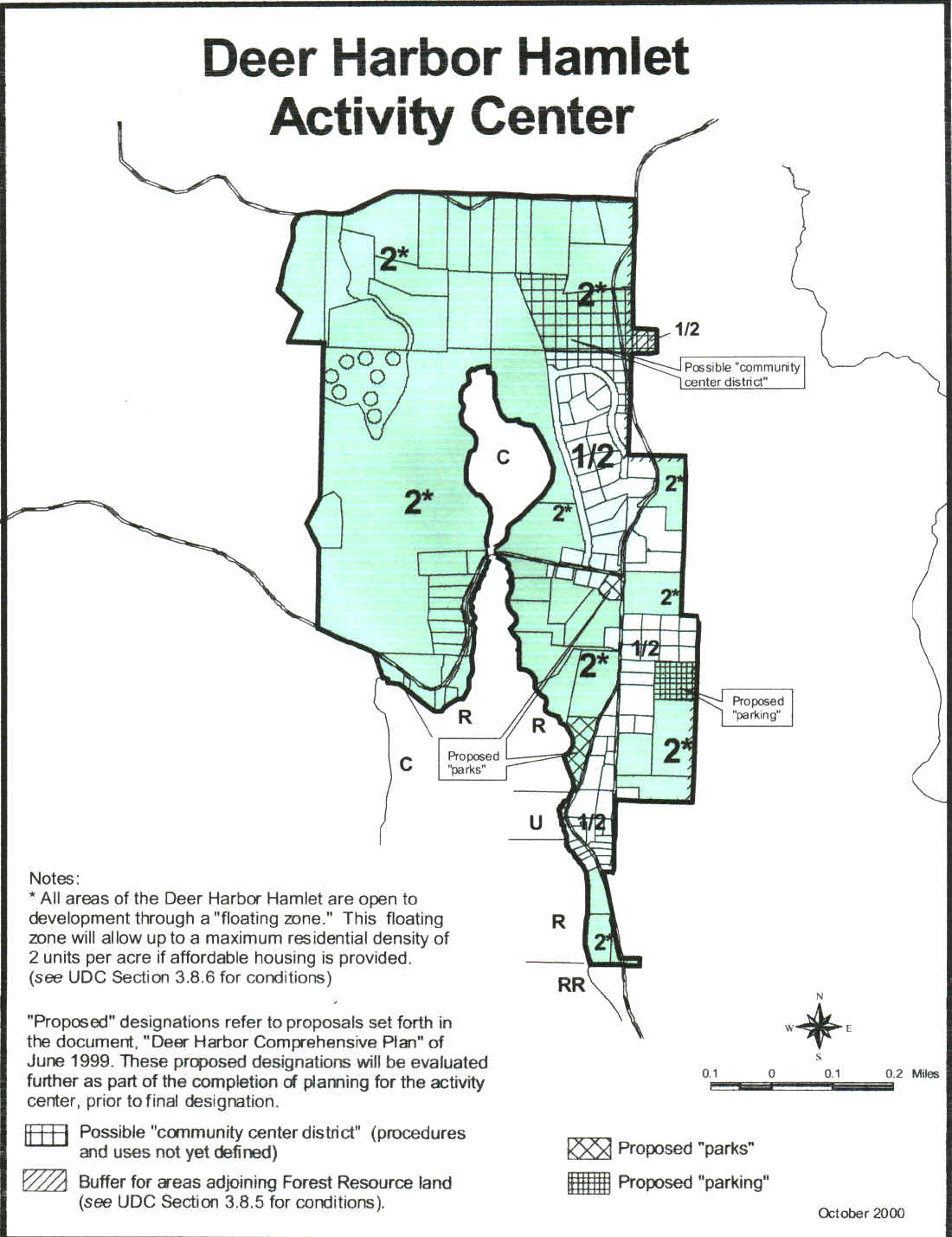 The Plan (p75) "A portion of the 16.73 acre parcel of land located to the west of Deer Harbor Road opposite the Deer Harbor Community Club. ..... is the only site within the Hamlet boundaries which meets the previously noted site criteria." |